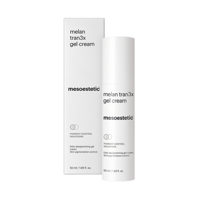Melan Tran3x Gel-Cream is een depigmenterende gelcrème die geleidelijk werkt om de huid een gelijkmatige teint te geven. Altijd in combinatie te gebruiken met Melan Tran3x Concentrate.